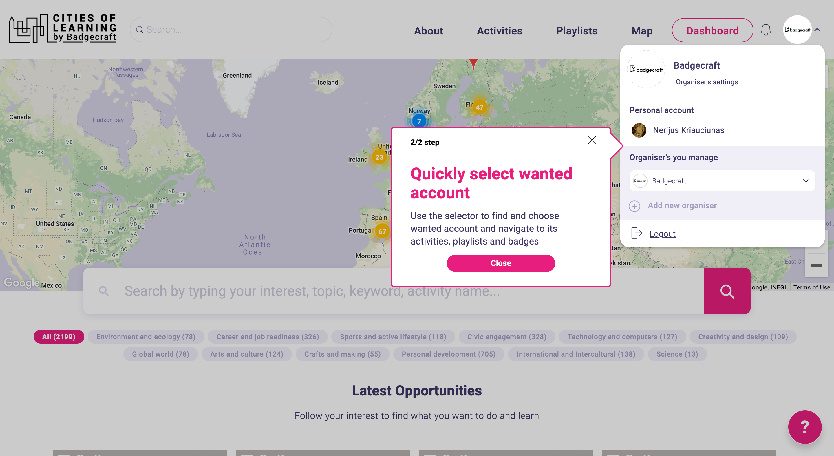 The Organiser’s Account allows you to create and manage Activities, Playlists and Badges. Organisers can be any type of organisation, school, company, informal group or freelance service provider.